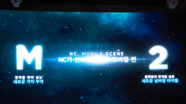 그 후 김 CCO는 "그 이후 우리는 하고 싶었지만 못했던 것들, 이루지 못했던 꿈을 모바일 플랫폼에서 완성해보고자 하는 마음으로 시작했고 우리는 그런 게임에 M을 붙이게 됐다. 그 중 몇 작품을 보여드리게 될 것이다. 또한 그걸로는 채울 수 없는 꿈도 있다. 그래서 해본 적 없는 게임과 새로운 아이디어를 과감히 해보자는 목적을 가진 게임에는 2를 붙이자고 결정했다"며 "이처럼 M에는 원작을 뛰어넘는 새로운 가치를 부여하는 게임에, 2는 플랫폼의 한계를 넘은 새로운 넘버링 타이틀 게임에 명칭을 부여하는 엔씨의 새로운 모바일 씬을 구축해나갈 것"이라는 목표를 밝혔다.