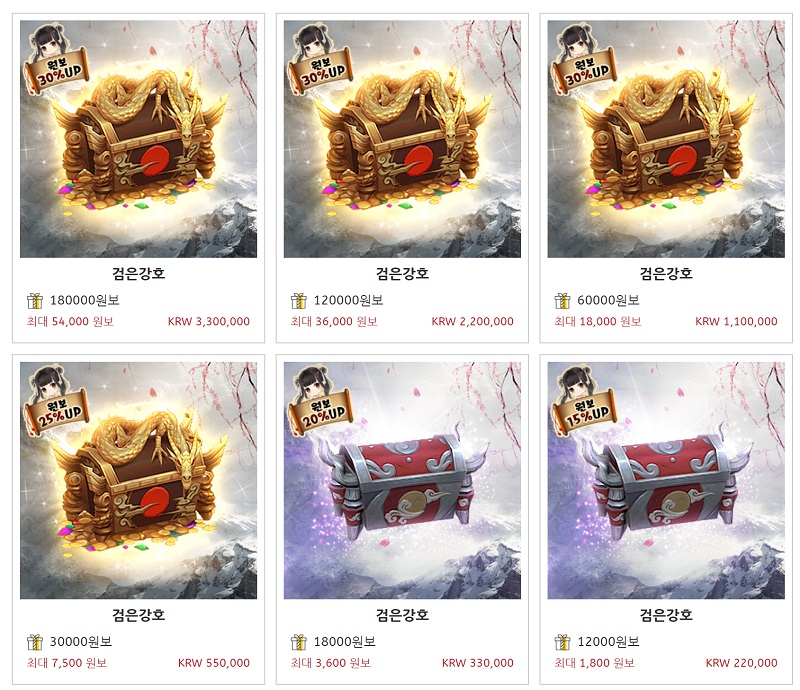 웹페이지를 통한 결제 상품은 최소 2만원부터 최대 330만원까지 판매 중이며, 이를 통해 결제를 할 경우 최소 10%에서 최대 30% 정도의 추가 캐시를 지급함으로써 결제를 유도하고 있는 것으로 확인됐다.