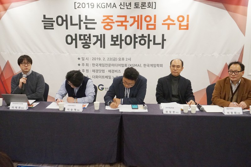 22일 서울 서초구 더화이트베일에서 진행된 ‘늘어나는 중국게임 수입, 어떻게 봐야하나’ 토론회는 KGMA와 한국게임학회가 공동 주최하며 매경닷컴·매경비즈가 후원했다. 발제 및 토론은 한국콘텐츠진흥원 이태희 유통지원팀장, 이엔피게임즈 이승재 대표, 한국게임학회 위정현 학회장(중앙대학교 교수), 매경게임진 이창희 국장이 나섰다.