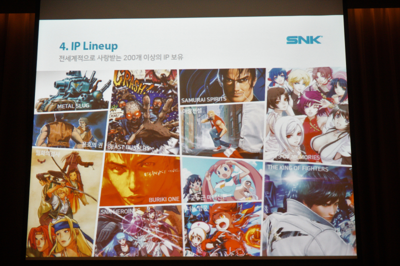 SNK 전세환 공동대표는 "SNK는 지속 성장의 근간인 다수의 IP 라이선스 사업 구조를 갖고 있다. 글로벌의 좋은 파트너를 선정해 게임을 개발해 수익이 나면 이중 10~12%를 SNK가 가져가게 된다."고 밝혔다.