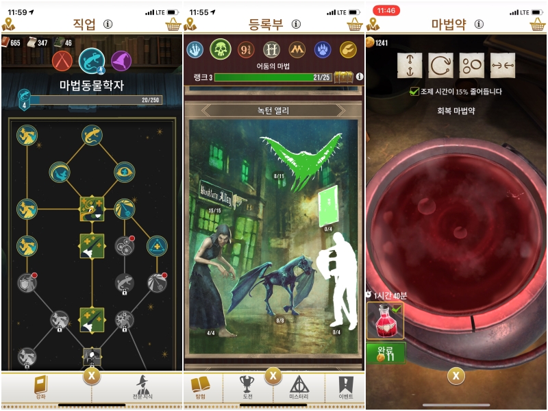 유저는 발견물을 찾으면 이를 등기부에 올리며, 이에 대한 보상을 받게 된다. 그리고 마법약 조제도 중요한 콘텐츠로서, 재료를 모아 다양하게 활용할 수 있는 마법약을 만들수 있다.