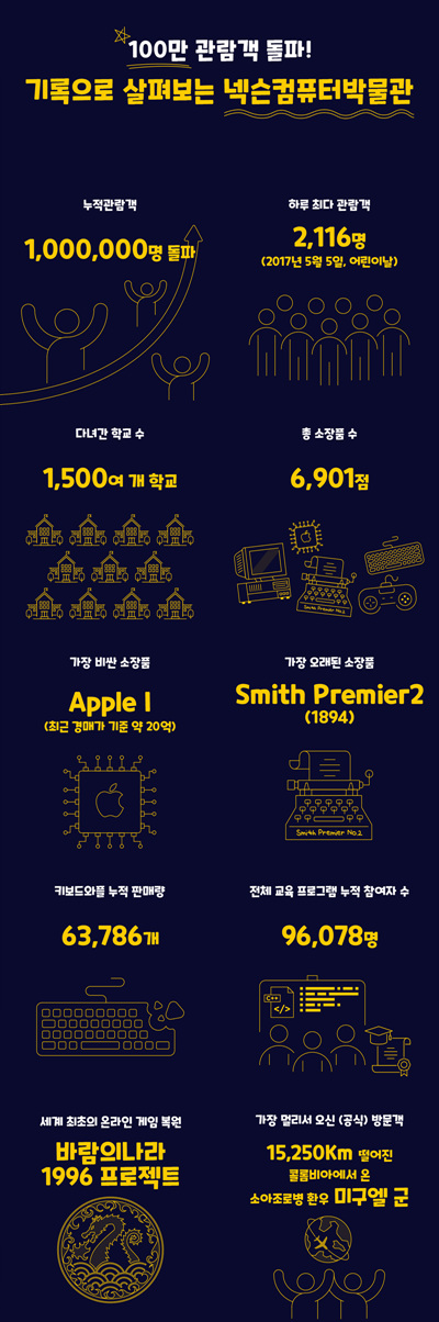 아시아 최초의 컴퓨터 박물관인 넥슨컴퓨터박물관의 누적관람객수가 약 6년 만에 100만 명을 돌파했다.
