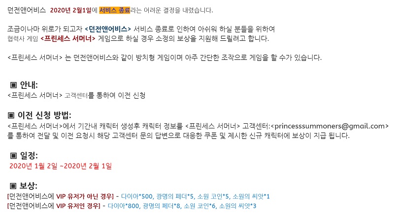 즉, 서비스 종료를 한 달도 채 남지 않은 날에 발표하면서 종료 사유도 밝히지 않고 임의로 서비스를 중단하고 환불도 사실상 거부했으며, 보상도 자사의 다른 게임에 해주는 신박한 행동을 보여주고 있다.