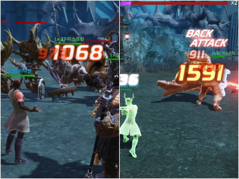 하지만 테라 히어로에서는 백어택이라는 요소가 있다. 적의 뒤에서 공격할 경우 기본 공격보다 더 강력한 대미지를 줄 수 있다. 정확한 가산 수치는 나와있지 않지만 체감상 20~30% 정도는 대미지가 추가되는 것을 확인할 수 있었다. 이 부분에서 유저의 수동 플레이를 유도하고자 하는 개발사의 설정이다.