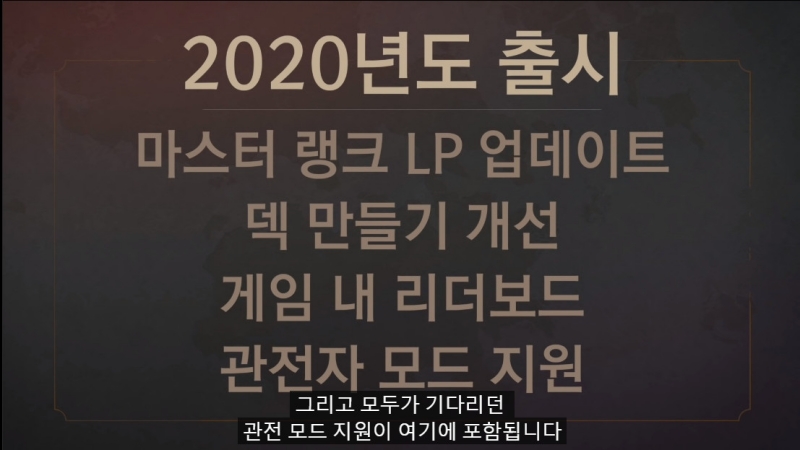 영상에는 LoR 앤드류 입 제작총괄, 데이브 거스킨 시니어게임디자인매니저가 출연해 올해 진행될 업데이트에 대한 소개와 디자인 콘셉트를 설명했다.