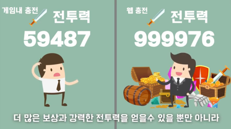 여기에 더해 APK를 따로 받아 게임을 플레이하면 공식 홈페이지를 통해 결제를 하는 불편함이 없이 바로 할인된 가격에 결제가 가능하다고 홍보하고 있었다. 게다가, 결제 페이지에서는 외부 결제를 할 경우 같은 금액으로 더 많은 보상과 강력한 전투력을 얻을 수 있다며 동영상을 통해 외부 결제를 진행하는 방법을 소개하고 있었다.