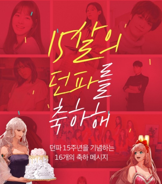 ‘던파’의 서비스 15주년을 맞아 그 동안 ‘던파’와 깊은 인연을 맺은 인기 스타 16인이 축하 메시지를 전했다. ‘던파 페스티벌’의 메인 사회자로 활약하며 ‘던파’ 유저들에게 가장 익숙한 성승헌 캐스터를 비롯해 제 3대, 8대, 9대 ‘던파걸’로 활동한 서유리, 진세연, 민서, 던파돌스 유라, ‘러블리즈’, 뉴이스트의 ‘JR’, 광고모델 권혁수, 김재우, 최현석, 인기 크리에이터 양띵, 보겸, 레바, 라온, 웹툰 작가 조석, 성우 남도형 등 16인의 스타가 총출동해 축하 메시지를 전했다.
