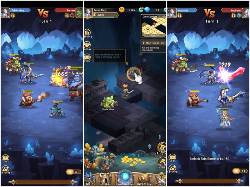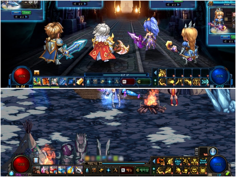위의 사진을 보면 4명의 용사가 있고, 위에는 각 용사의 상태 화면이 나오고 있으며 아래에는 전반적인 게임의 인터페이스가 보인다. 이 사진만 놓고 보면 이런 분위기로 게임이 진행되는 것으로 생각할 수 있다. 게임 광고이기 때문이다.