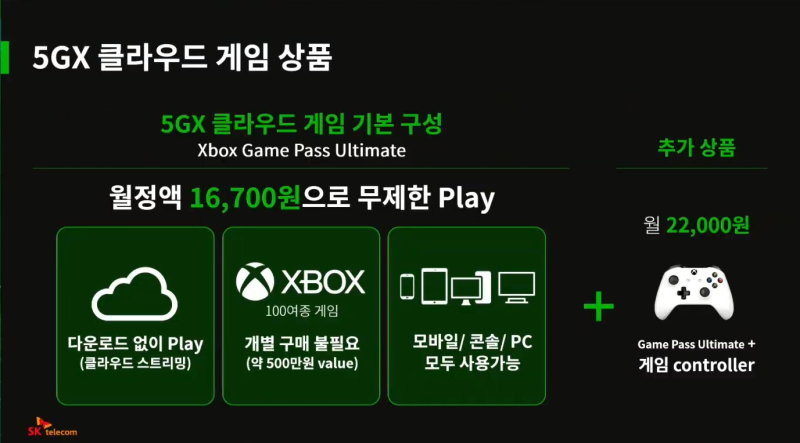 SK텔레콤(이하 SKT)은 16일 SKT 5GX 클라우드 게임 온라인 간담회를 개최하고 자사와 마이크로소프트(이하 MS)가 협업해 한국 시장에서 Xbox 클라우드 게이밍 서비스를 진행한다고 밝혔다.