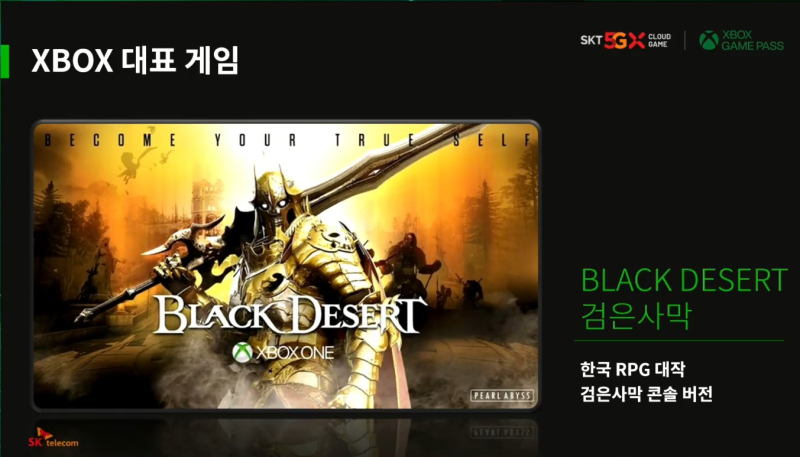 다음으로는 조재유 클라우드게임 사업담당이 발표를 진행했다. 5GX 클라우드 게임 서비스에는 다양한 장르의 게임이 준비되어있는데, 이중 대표게임 6종으로 ‘기어스 5’, ‘포르자 호라이즌 4’, ‘오리와 도깨비불‘, ‘마인크래프트 던전’, ‘헤일로 5’, 그리고 ‘검은사막’을 꼽았다. 특히 ‘검은사막’에서는 게임패스 이용자에게 2만원 상당의 아이템 선물도 제공한다는 계획이다.