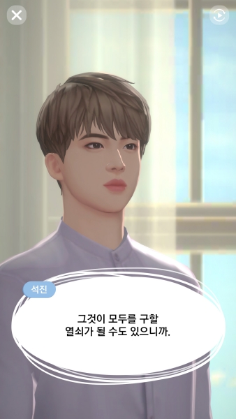 스토리는 기존 미디어의 틀을 벗어나지 않는다. 사건을 해결하지 못하면, 특정 시간대로 되돌아오게 되는 석진(진)의 시점으로 멤버들의 문제를 함께 해결하는 과정을 체험할 수 있다. 전개 과정에서 몇 가지 선택지가 유저에게 주어진다. 완성된 이야기를 바탕으로 한 만큼, 결과에 큰 영향을 주지는 않는 것 같다.