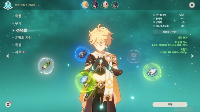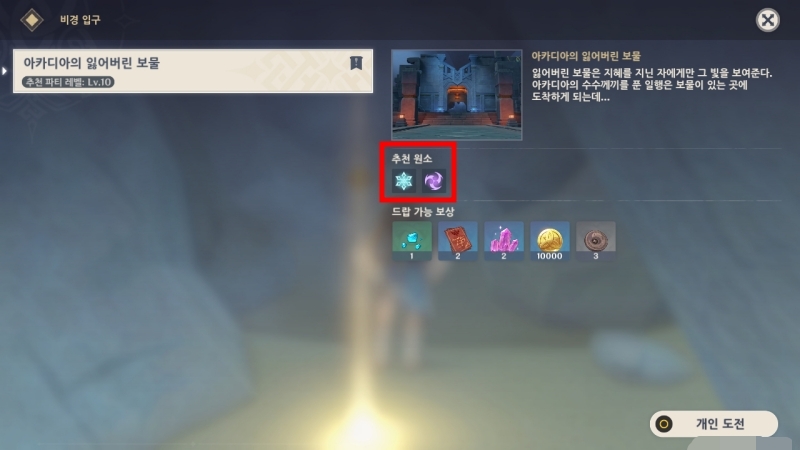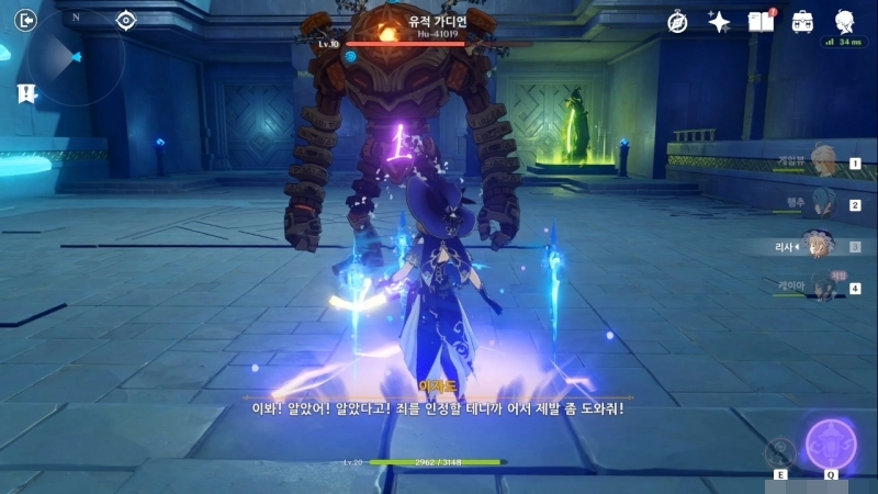 대부분의 전투는 이런 하나의 메인 콤보로 대부분을 극복할 수 있었다. 단, 일부 던전의 경우 불이나 얼음같이 필수 원소를 요구하기도 하니, 입장 전에 파티 구성을 꼭 확인하자. 초반 던전은 메인 스토리를 진행하며 합류한 동료들만으로 충분하다.