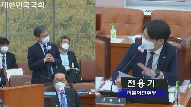 문제를 제기한 더불어민주당 전용기 의원은 설문조사 결과에서 응답자 70%가 허위 과장 게임 광고의 피해를 받았다고 지적했다. 이에 게임물관리위원회 이재홍 위원장은 “해외 게임이 주로 허위 광고를 하고 있다”라고 답했다. 이를 막기 위한 제도적 장치를 마련하라는 지적과 논의하고 있다는 대담이 이어졌다.