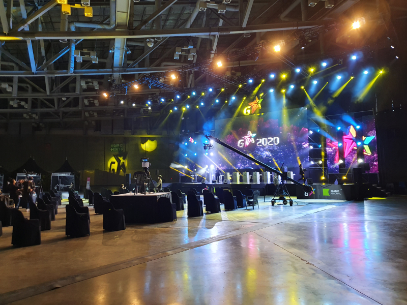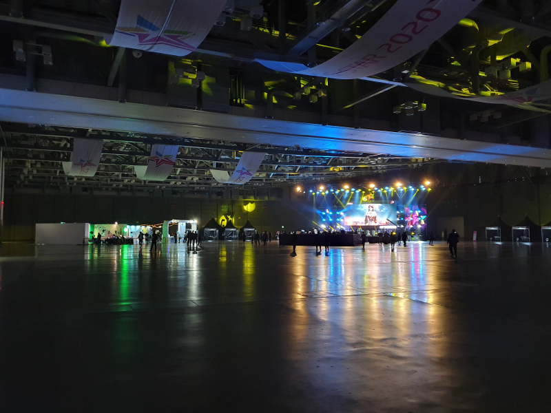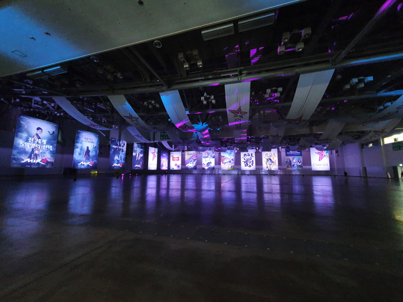 그리고 왼쪽을 보면 일부 행사 진행을 위한 무대가 마련되어 있다. 이곳에서는 개막식은 물론 일부 현장 라이브 진행과 주말에 진행되는 코스프레 어워즈의 장소로 활용된다.