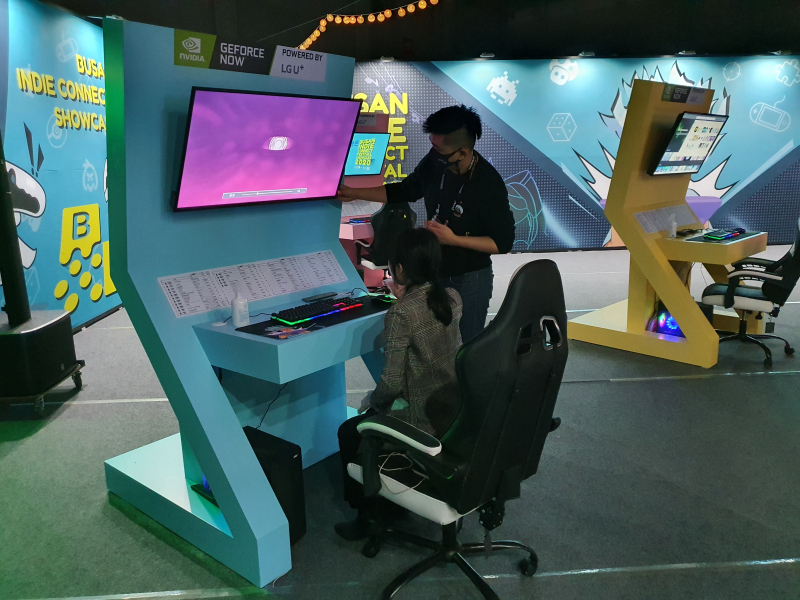 무대 건너편에는 이번 지스타에 유일하게 마련된 부스가 있다. 바로 부산 인디커넥트 페스티벌(BIC) 쇼케이스 부스다. 이곳에서는 현장에 온 관계자들을 대상으로 BIC에 참가했던 게임들을 직접 체험해볼 수 있는 장소로 운영하고 있다.