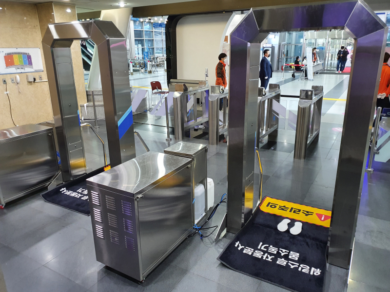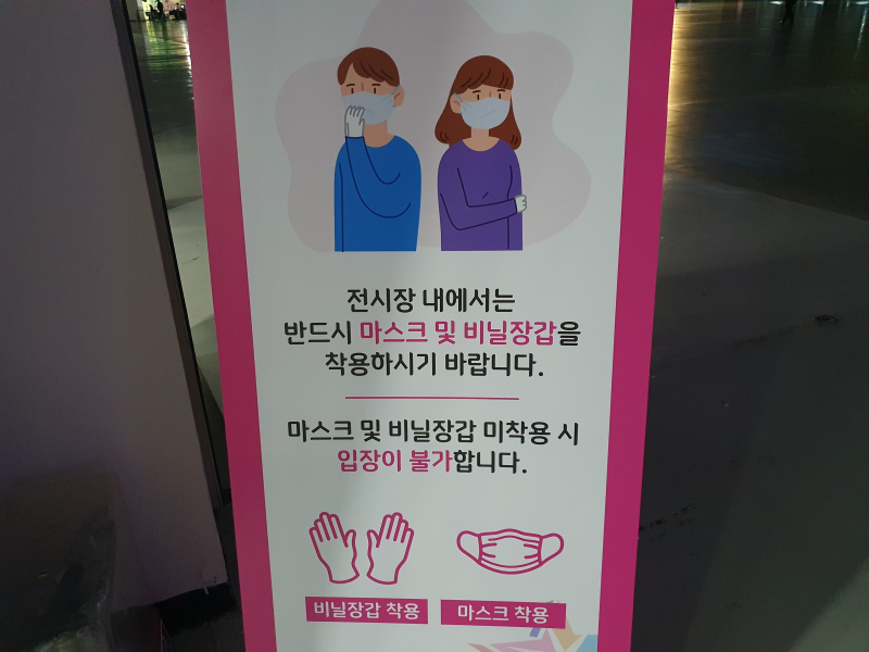 행사장 내부에 입장할 때도 다시 한 번 방역 시스템이 가동된다. 입구에서는 먼저 발열 체크가 진행되며, 여길 통과한 후에는 워킹스루 자동 분사 몸 소독기를 통해 몸 전체에 대한 방역을 진행하는 것을 확인할 수 있었다. 그리고 행사장 내부는 마스크는 물론 비닐장갑 착용을 필수로 내세웠다.