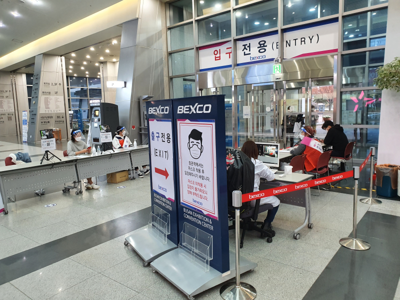 지스타가 개막한 벡스코는 철저한 방역 시스템을 가동시켰다. 입장 시 방문객 개인정보 확보를 위한 시스템과 발열 체크, 손소독제 구비 등으로 입장객은 1차 관문이다.