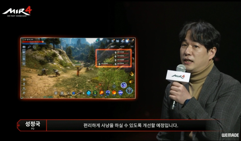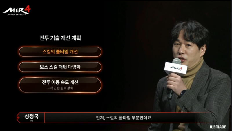 이후에는 위메이드넥스트의 성정국 PD와 위메이드 이장현 사업마케팅실장이 등장해 게임에 대한 이야기를 나눴다. 이장현 실장은 “최근 CBT를 통해 서비스 안정화에 대한 검증과 콘텐츠 완성도 높이는데 집중했다.”고 밝혔고, 성정국 PD는 “스킬 쿨타임 개선과 보스 스킬 패턴 다양화, 전투 이동속도 개선 등이 진행될 예정”이라고 밝혔다.