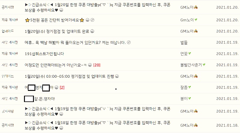 게임 운영에 있어 가장 핵심이 되는 특히 검은강호의 공식 카페 운영자는 하루동안 사용할 수 있는 쿠폰 공개 공지는 매일 올리고 있지만, 공식 카페에서 운영자를 찾거나 문의를 하는 유저들의 글은 외면하고 있다.
