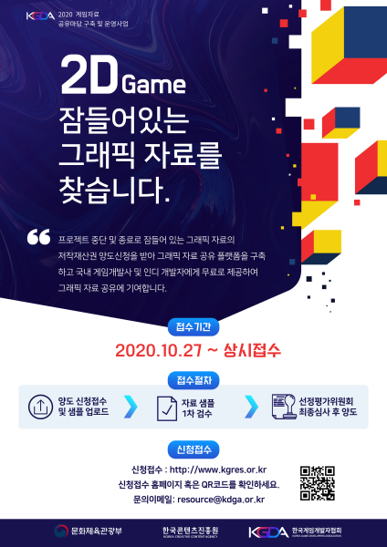 한편, 문화체육관광부와 한국콘텐츠진흥원이 주관하고, 한국게임개발자협회(KGDA)가 주관한 게임자료 공유마당 사업은 지난해 10월부터 2D그래픽 리소스를 대상으로 리소스 무상증여 및 유상양도 신청을 상시 접수 중이다.