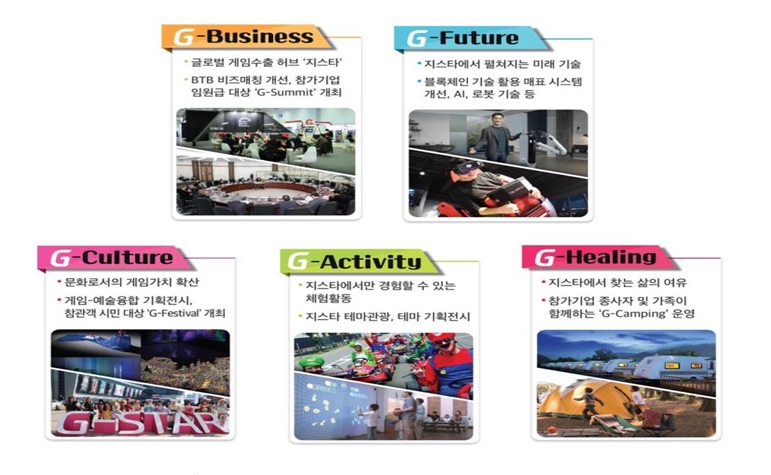 특히, 유치전에서 ‘5G 전략(G-산업, G-첨단기술, G-문화, G-즐길 거리, G-치유)’을 중심으로 단순 게임전시회를 넘어서 산업, 기술, 문화가 융합된 제안서를 제시하며, ▲지스타를 최신 게임산업 경향을 주도하고 단순 게임을 넘어 첨단기술을 선보이는 글로벌 게임전시회로 성장시키고 ▲지스타를 중심으로 축제와 산업이 동반 성장하는 명실상부 ‘게임 관문 도시 부산’으로 도약하겠다는 포부를 밝혔다.