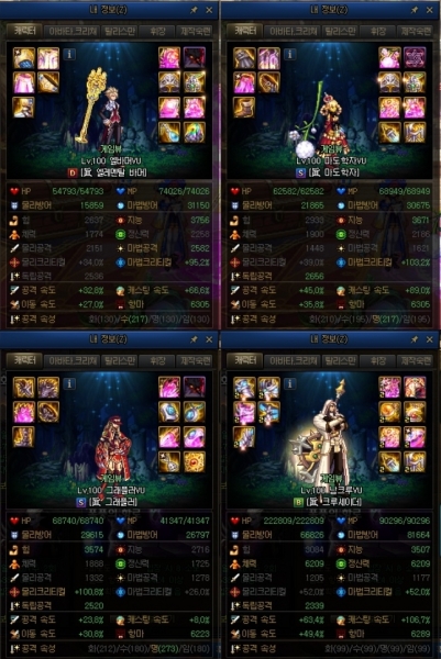 100레벨 에픽과 신화 장비 파밍을 마친 딜러-시너지2-버퍼 파티는 최소 1번의 패턴을 깨야 했다. 전체적인 대미지가 낮은 데다, 스킬 쿨타임 분배 문제도 시간을 잡아먹었다. 전 파티와 달리 버프 물약을 충분히 사용했음에도 클리어는 약 6분 47초~8분 가량이 소모됐다. 쿨타임 분배로 딜찍 플레이가 가능하지만, 선혈자 이상의 중간보스는 패턴 1~2개를 봐야 했다.