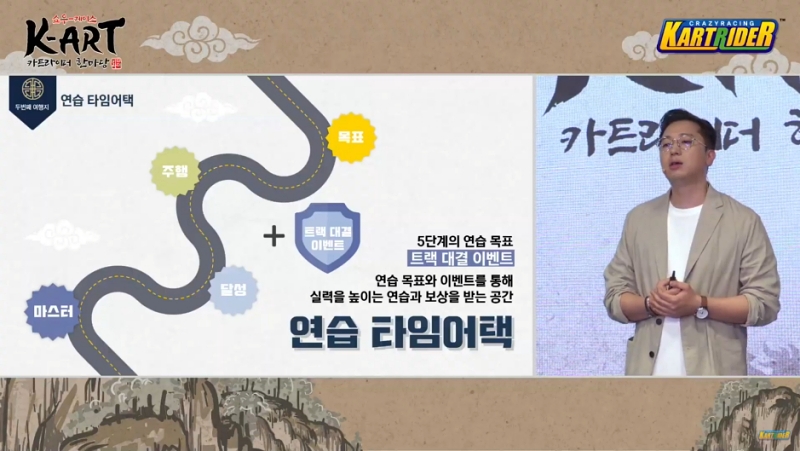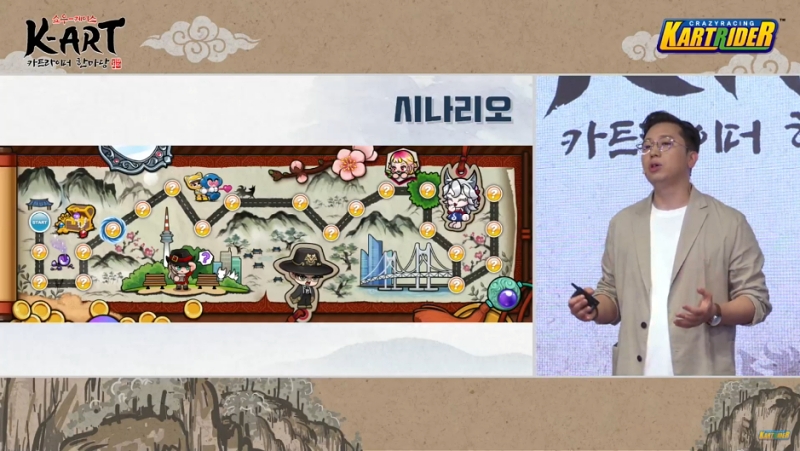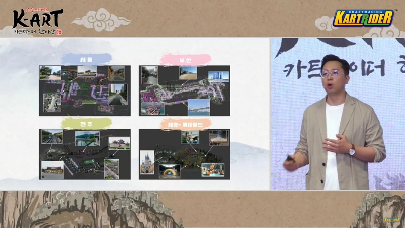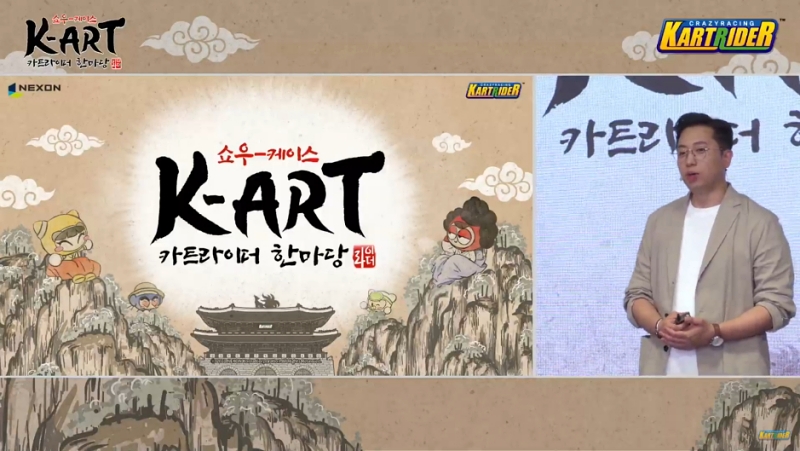 발표는 ‘카트라이더’ 개발을 책임지는 넥슨 조재윤 디렉터가 담당했다. 그는 먼저 “유저분들에게 한국 테마를 만들어 달라는 피드백을 많이 받았다”라며 선정 이유를 밝혔다.