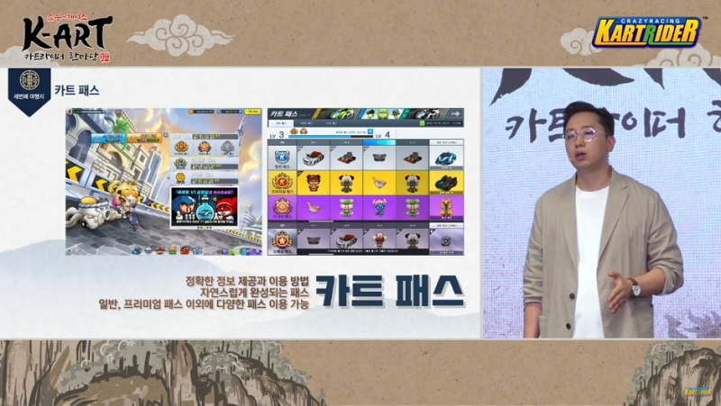 인지도가 낮고, 활용도 어려웠던 시즌 패스는 카트 패스로 바꾼다. 유저가 좋아하는 콘텐츠를 즐기는 것만으로 모든 보상을 얻을 수 있도록 개선된다. 정확한 정보 제공과 이용 방법을 안내해 혼선을 줄여간다. 플레이를 통해 자연스럽게 완성되는 패스가 목표이며, 일반-프리미엄 패스 외에 PC방 패스와 같은 다양한 패스의 등장이 예고됐다.