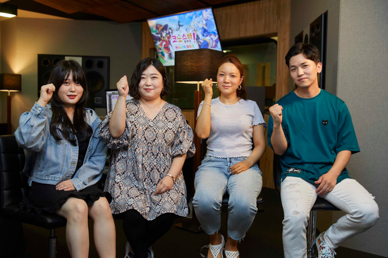 참여 성우의 면면도 화려하다. 카즈마 역에 최승훈, 아쿠아 역에 김율, 메구밍 역에 김예림, 다크니스 역에 김채하 등 ‘강철의 연금술사’, ‘원피스’, ‘포켓몬스터 시리즈’를 비롯한 인기 애니메이션에 참여한 성우진들이 대거 합류했다.