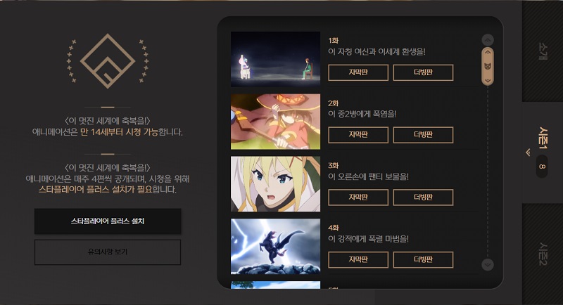 이 애니메이션은 지난 6월 27일 첫 방영을 시작했는데, 애니맥스TV는 물론 케이블TV를 볼 수 없는 유저들을 위해 ‘코노스바 모바일’ 공식 홈페이지에서 무료로 볼 수 있도록 조치, 팬들의 염원을 들어줌과 동시에 게임과의 시너지까지 추구했다.
