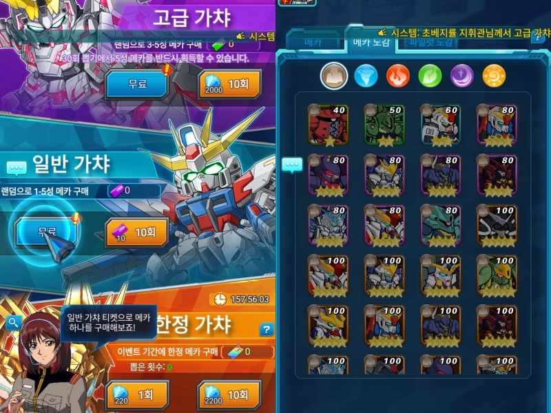 등장 건담만 해도 윙 건담 제로나 V건담, 건담 아스트레이, 스트라이크 프리덤 건담 등이 확인됐다. 강습상륙함인 화이트베이스도 등장하고, 내부의 공식 운영 로봇의 이름은 ‘하로’로 칭하고 있다.