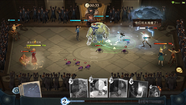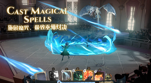 ‘해리포터: 마법각성’ 전투의 큰 틀은 ‘클래시 로얄’과 비슷하다. 실시간으로 에너지가 차고, 유저는 이 에너지를 소비해서 유닛을 소환하거나 마법을 사용해서 적을 처치하면 된다. 소환 마법과 공격 마법은 카드 형식으로 구현됐고, 같은 카드를 여러 장 모으면 해당 카드의 레벨이 오른다.