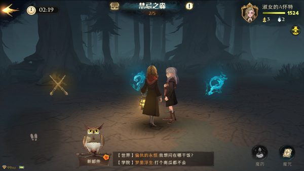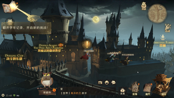 게임을 시작하면, 유저 캐릭터가 호그와트 마법학교에 입학해서 마법을 배우는 것으로 이야기가 진행된다. 이 과정에서 마법 지팡이를 받고 자신만의 올빼미를 선택하게 된다. 그리고 전투하는 방법을 배우고, 미지의 숲으로 모험을 떠나는 콘텐츠를 진행하면서 본격적인 게임이 시작된다.