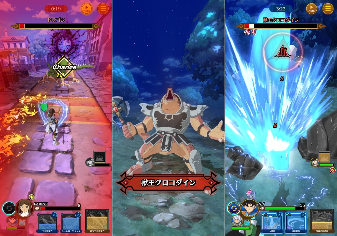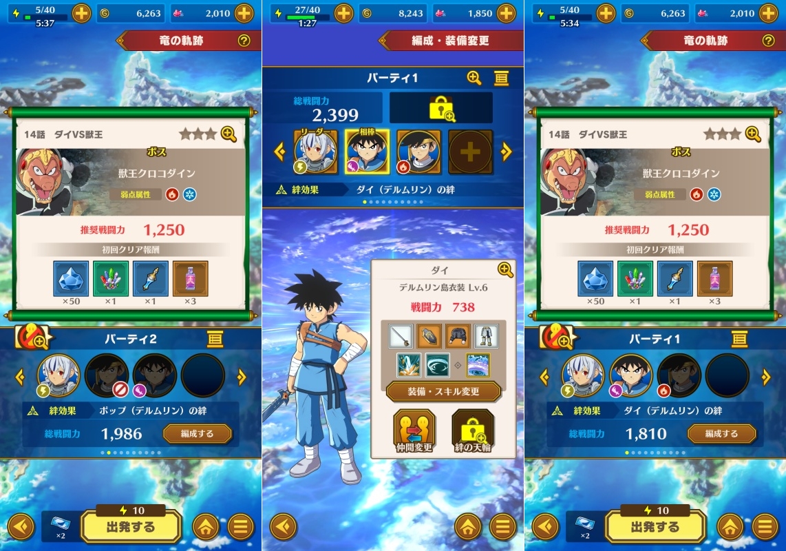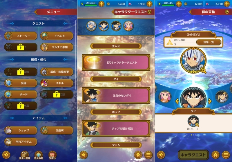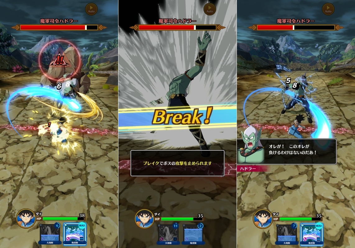 여기에 오리지널 캐릭터가 등장해 스토리를 전개하는 방식을 더했다. 인연의 용사로 불리는 유저의 분신 주인공이다. 최근 IP 기반 모바일게임이 원작의 요소들을 그대로 차용하는 것과는 차별화된 부분이다. 한정된 스토리 라인을 늘리기 위한 하나의 방법일 수도 있다. 기본적인 진행은 위기에 빠진 세계를 구하기 위한 주인공의 시점으로 그려지며, 인연의 힘을 통해 다이와 동료들과 함께 두 가지 세계에서 다양한 모험을 즐기며 몰입감을 높이는 구성으로 느껴진다.