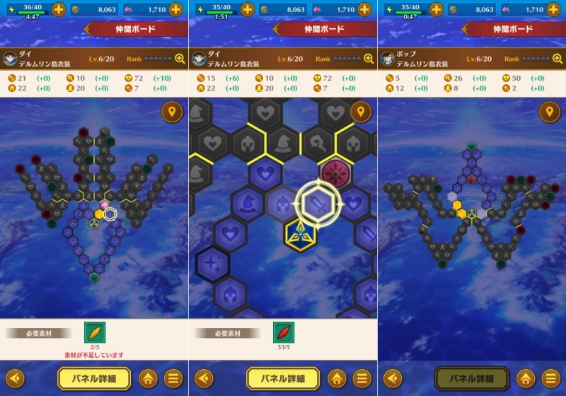 육성 시스템은 풍부하고 다양하다. 하나씩 떼어놓고 보면 일반적인 RPG와 비슷하다. 장비 강화와 캐릭터 레벨 업이 기본으로 깔렸다. 여기에 이야기를 진행하며 얻은 보상으로 특성을 강화하는 방식을 더했다. 원작의 요소인 인연과 우정, 성장이란 키워드를 섞은 점도 눈에 띈다. 인연의 조각을 배치해 능력치를 높이는 영혼의 결정 시스템이다.