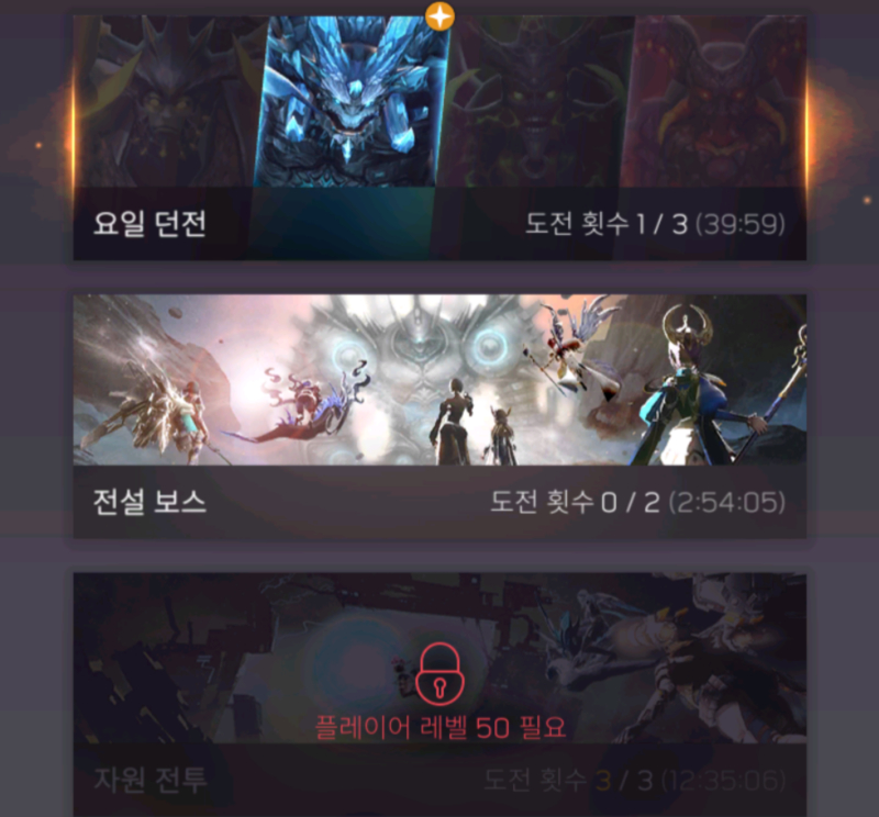그리고 거대 보스에 도전, 획득한 일일 피해량의 순위를 통해 다른 유저들과 경쟁할 수 있는 전설 보스 콘텐츠 이외에도 후반 콘텐츠로 순위 대전과 자원 전투, 빙고 전투가 준비되어 있다.