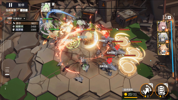 전투는 오토배틀러 게임과 로그라이크 게임의 요소를 혼합한 모습이다. 유저가 보유한 캐릭터 5명을 적절하게 배치하고 적과 자동전투가 진행된다. 유저가 원하는 시점에 기술이나 궁극기를 사용할 수 있다. 다만, 상점에서 같은 캐릭터를 구매해서 캐릭터의 등급이 오르는 요소는 없다.