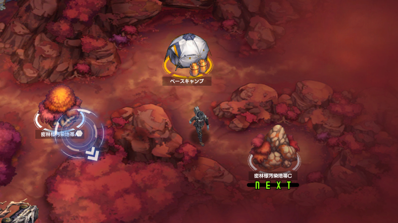 그리고 게임 중간마다 베이스 캠프 혹은 특수 지역이 나오는데, 떨어진 아이템을 습득할 수 있는 베이스 캠프에서는 직접 캐릭터를 움직여 캠프를 뒤져야 했다. 그리고 어떤 맵에서는 진짜 JRPG처럼, 맵에 있는 적에게 직접 다가가 접촉한 뒤 전투 화면으로 바뀌는 부분도 있었다.