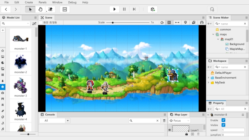 ‘프로젝트 MOD’는 온라인게임 ‘메이플스토리’의 캐릭터와 NPC, 맵 데이터(이하 리소스)를 사용해 게임을 만드는 일종의 간편 게임 제작 툴이다. 프로그램에 대한 지식이 없더라도, 캐릭터를 끌고 와서 배치하고, 간단한 연동만으로 게임을 개발하는 환경을 제공한다. 프로젝트 명에 사용된 MOD는 수정을 뜻하는 영단어 modification의 약어로 추정된다. 게이머에게는 한 게임의 리소스를 사용해 새로운 것을 만드는 2차 창작을 뜻하는 단어로 익숙할 것이다. 프로젝트가 추구하는 방향성을 알 수 있는 부분이다.