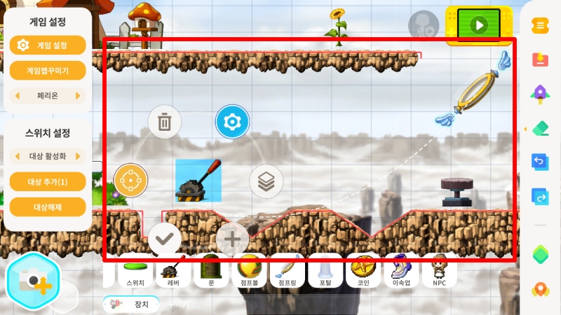 흥미로운 점은 물체(오브젝트)간의 연동이다. 간단한 스위치를 맵에 배치하고, 대상(Target)을 지정하는 초보적인 연동만으로 기능 활성화와 비활성화 상태를 손쉽게 조정할 수 있었다. 이를 통해 스위치를 켜면, 진행에 필요한 점프대가 나오는 간단한 퍼즐을 만들 수 있다. 지금 단계에서도 기본적인 게임 프로그래밍의 구조와 논리적인 상호작용을 학습하는 툴로도 활용 가능성이 높아 보였다.