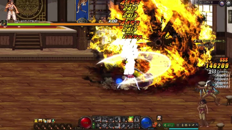 첫 콤보에는 적을 쓰러뜨리는 하단 공격이 포함돼 있다. 이를 제외한 일반 공격 3타와 백스텝-플레게의 화염병 콤보는 영상과 유사하게 재현이 가능했다. 또, 즉결심판은 찌르기와 베기 두 동작으로 이루어진 기술이지만, ‘던파 듀얼’에서는 첫 공격으로 올려베는 모습이 추가됐다. 재현 영상에서는 이 대신 대시 공격과 즉결심판 연계로 최대한 비슷한 콤보로 재현했다.