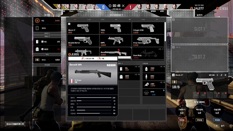 특이한 부분은 사망 시에도 구매한 총기가 유지된다는 점이다. 재화인 코인이 장비 구입 외에도 레벨에 투자되기 때문으로 추정된다. 승자의 권리인 더 좋은 장비 구입과 코인 관리 등의 전술적 포인트를 총기 개조로 옮긴 느낌이다. 덕분에 슈팅게임 실력이 절망적인 필자 입장에서도 부담 없이 장비를 구입하며 게임을 즐길 수 있다.