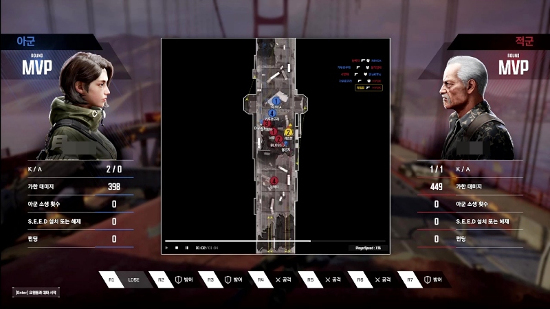 개인적으로 가장 높게 평가하고 싶은 부분은 복기 기능이다. 매 라운드가 끝나면 미니맵 상황판에서 적과 아곤의 이동 경로와 교전 상황을 간략하게 보여준다. 또, 아군의 시점을 공유하는 상태에서 조작키 입력을 어떻게 진행하는지도 화면에 표시해 준다. 이는 고수 유저의 플레이를 간접적으로 학습하는 도구이자, 정식 서비스 이후 발생할 수 있는 핵 프로그램 검증 등에 활용될 가능성이 높아 보이는 부분이다. 이밖에 비교적 낮은 스펙(지포스 GTX 1060)으로도 높은 이상 수준의 그래픽과 안정적인 프레임 유지 등 최적화 부분은 충분히 만족스럽다.