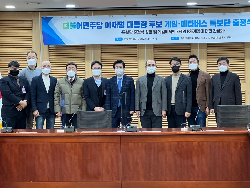 더불어민주당 이재명 후보가 10일 국회의원회관 제1세미나실에서 게임/메타버스 대통령 후보 특보단의 출정식을 개최했다. 대선후보 중 게임 관련 특보단을 만든 곳은 이재명 대선캠프가 사상 최초다.