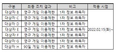 그리고 추가 조사의 결과와 정보를 유출한 직원에 대한 처분이 15일 공개됐다. 나딕게임즈 유병휘 PD는 “철저한 조사를 진행했고, 그 결과를 투명하게 안내하겠다”라며 정보가 유출된 경로를 공개했다. 업데이트 내용을 유출한 직원A는 총 6명에게 개발자 신분을 노출하고, 대외비에 해당하는 정보를 유출한 것으로 확인됐다. 이어서 유병휘 PD는 “개발자가 가져야 할 보안의식을 위반한 사건이다. 매우 심각한 사안으로, 엄격한 기준 하에 징계위원회를 열었으며, 그 결과 직원 A는 해고됐다”라고 전했다.