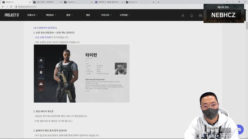 한편, ‘프로젝트D’는 라이브 방송 이후부터 28일 12시까지 2월 정기 테스트를 실시한다. 지난 테스트 참여자들은 추가 절차 없이 플레이할 수 있고, 기존 테스트 미참여자들은 테스터 코드 ‘NEBHCZ’를 입력해야 한다. 3월 테스트에서는 모든 유저가 참여할 수 있도록 오픈한다는 방침이다.