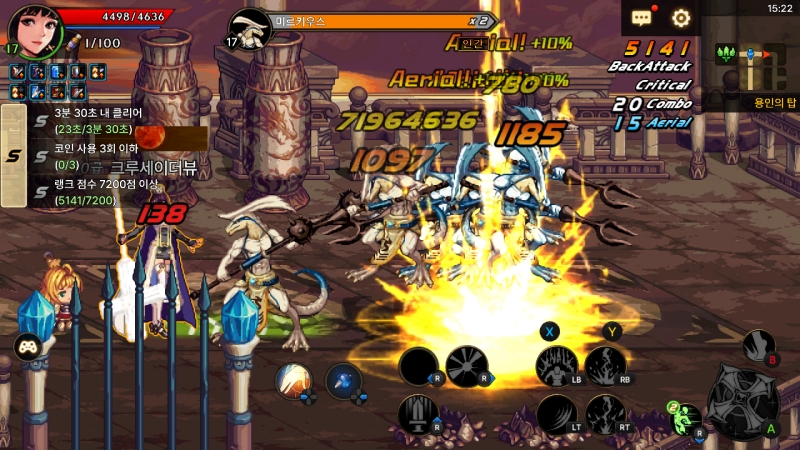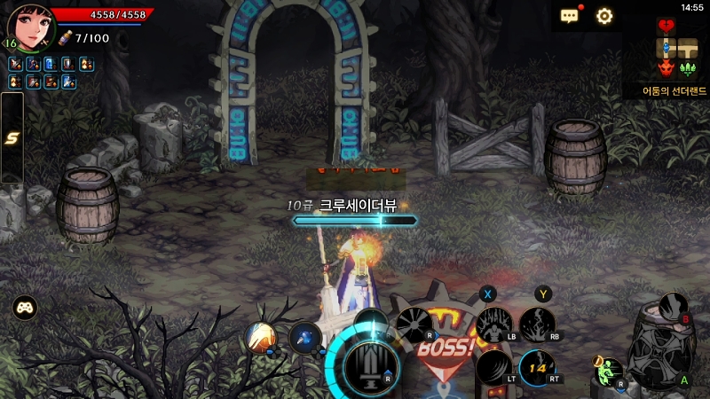 던전 구성은 모바일에 맞춰 짧아졌다. 보스방까지 바로 이동하는 동선을 선택하면 피로도 4~5가 소모된다. 하루에 플레이할 수 있는 던전의 수는 약 20개 남짓이다. 물론, 피로도 회복 영약과 같은 수단을 쓰면 추가 입장이 가능하다.
