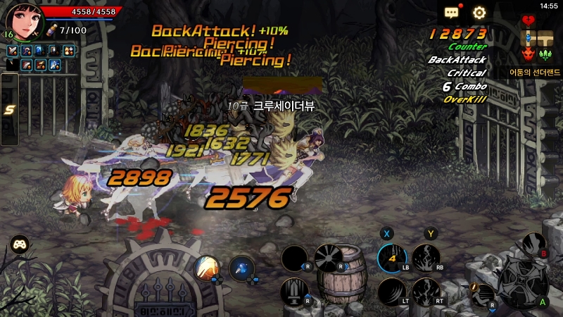 플레이에서 느껴지는 속도감도 최신 버전의 원작과 꽤나 다르다. 이동 속도는 빠르게, 전투 템포는 느리게 조정됐다. 많은 적을 한 번에 공격할 때 역경직이 커 체감 속도가 느려지는 것도 이유다. 유지시간 자체가 사라진 캐릭터 및 파티 버프도 눈에 띈다. 마나 회복 관련 옵션을 중요시했던 과거의 방식이다. 버프 사용에 따른 각종 옵션 효과을 제한하기 위한 것으로 풀이된다. 크루세이더의 파티버프 역시 재사용 대기시간보다 유지시간이 짧기 때문이다.