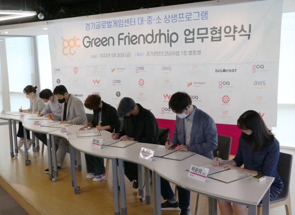 스마일게이트 메가포트(대표 장인아)는 경기콘텐츠진흥원(원장 민세희, 이하 경콘진)과 게임 개발 생태계를 육성하고 게임산업계 양극화를 해소하기 위한 ‘GGC Green Friendship’ 업무 협약을 지난 20일 체결했다고 밝혔다.