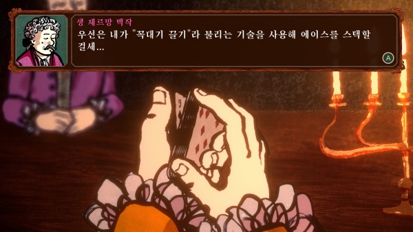 ‘카드 샤크’는 트럼프 카드를 사용한 게임에 이겨야 이야기가 진행된다. 그렇다고 해서 복잡한 카드 게임의 규칙을 알 필요는 없다. 왜 승리하는지, 어떤 과정을 거쳤는지는 보여주지 않기 때문이다. 생 제르망 백작이 지시한 대로 기술을 성공시키면, 바로 승리하는 식이다. 카드 게임은 어디까지나 이야기 전개와 재미를 더하기 위한 장치 정도로 쓰일 뿐이라 부담을 가질 필요가 없다.